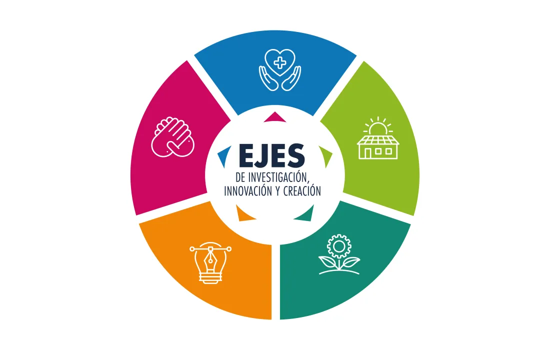 La definición de estos ejes fue el resultado de un gran consenso institucional, construido a partir de la recopilación de trayectorias y capacidades de los grupos de investigación de la Universidad en relación con las tendencias globales en ciencia, tecnología, innovación y creación, así como las apuestas misionales derivadas de las apuestas por una ecología integral y la promoción de la fraternidad.