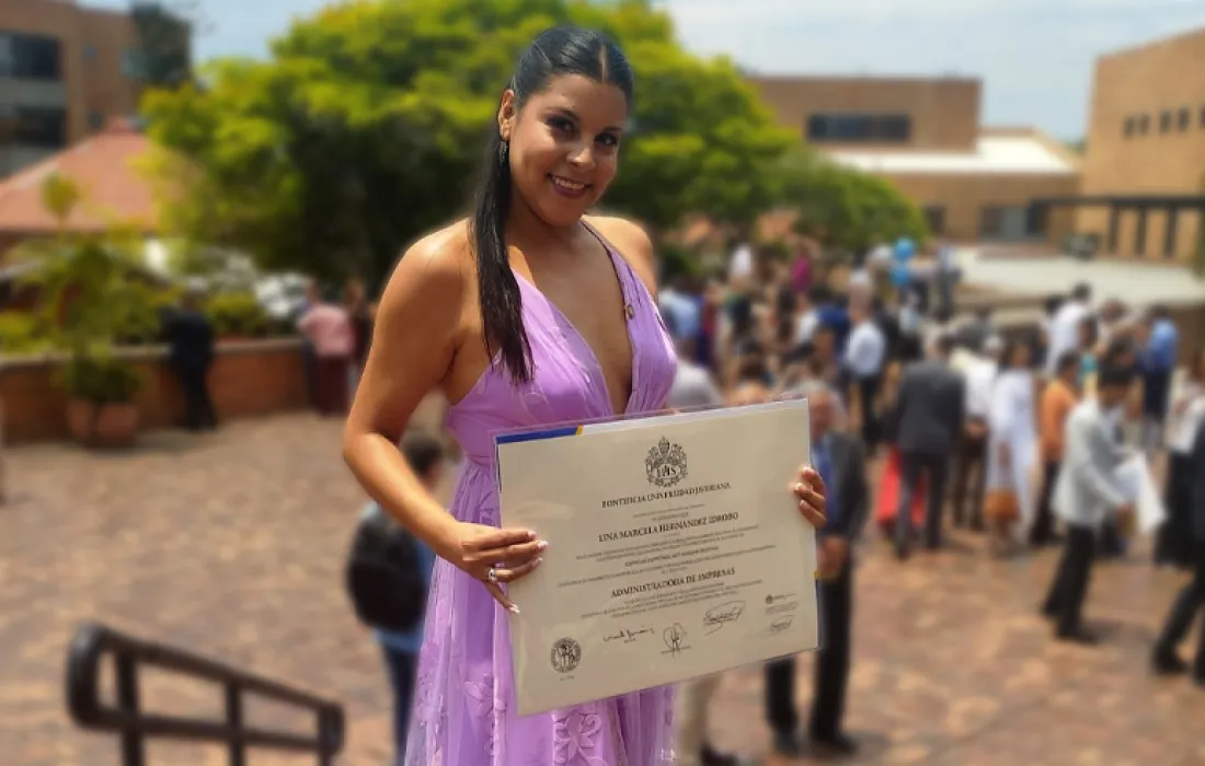 Lina ha brillado a lo largo de su recorrido académico y finalmente completó con éxito su programa de estudios en la carrera de Administración de Empresas, en la Javeriana Cali, su compromiso y el continuo deseo de aprender han dado como resultado un logro excepcional. Desde que Lina recibió la beca para cursar sus estudios, su camino ha sido un ejemplo del poder de la perseverancia y la pasión por cumplir sus sueños. Por eso, a lo largo de su tiempo en la Javeriana Cali, ha demostrado ser una estudiante ejemplar, destacándose en varias áreas. Además de sus logros académicos, esta joven ha tenido que trabajar y estudiar al mismo tiempo, durante todo su recorrido académico y así continuar con sus obligaciones, demostrando que la dedicación hace la diferencia. Su familia, conformada por su madre y hermano menor, han sido su polo a tierra, brindándole todo el apoyo en esta etapa de retos y sacrificios, pues esta jóven un día decidió iniciar su camino profesional y hoy recibe los frutos de esa decisión, esto es un claro ejemplo de que ser Javeriano es un camino y un sello que vivimos en familia.