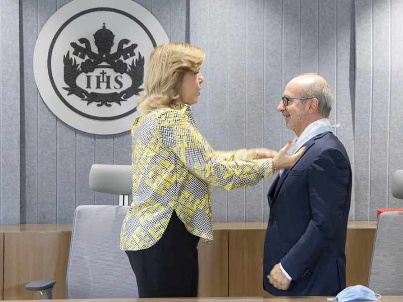 La gobernadora del Valle, Clara Luz Roldán González, confirió este jueves, 15 de septiembre, la Medalla del Orden al Mérito Vallecaucano al padre rector, Luis Felipe Gómez Restrepo, S.J., por su aporte desde la academia en la educación superior en la región. La ceremonia se realizó con la presencia de las directivas de la Javeriana Cali y el equipo de trabajo de la mandataria departamental.