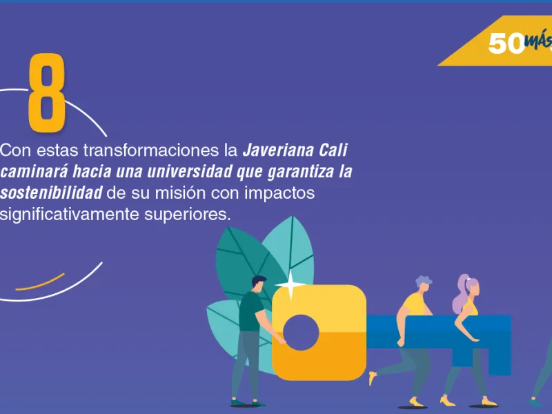 Innovación educativa con relevancia, construcción colaborativa de conocimiento y gestión universitaria especializada. Esas son las transformaciones esenciales que le permitirán a la Javeriana Cali desarrollar su capacidad de ser una Universidad Transformadora que impacta proyectos de vida personales y colectivos, y que contribuye significativamente a la solución de las causas estructurales de los problemas del planeta, gracias a la vitalidad de su comunidad educativa.